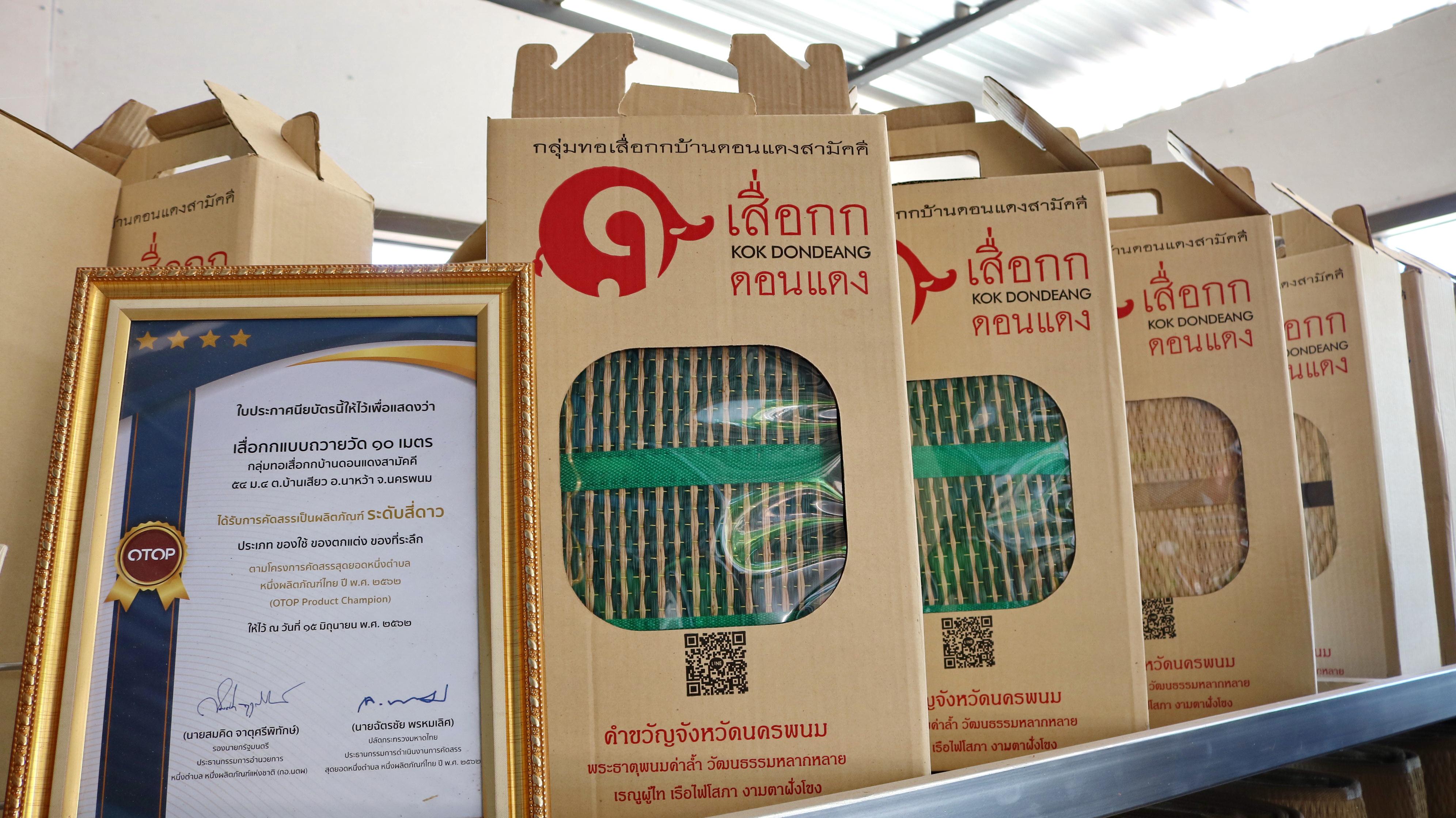 ที่บ้านดอนแดง ตำบลบ้านเสียว อำเภอนาหว้า จังหวัดนครพนม เป็นพื้นที่ลุ่มต่ำน้ำท่วมขัง จึงมีต้นกกขึ้นอยู่มาก จึงได้มีการนำกกมาใช้ให้เกิดประโยชน์ โดยนำมาทดเสื่อกกไว้ใช้และจำหน่าย เป็นการสืบสาน วัฒนธรรมและใช้ภูมิปัญญาชาวบ้านผสานวัฒนธรรมของท้องถิ่น ในการผลิตเสื่อกกและพัฒนาให้มีความหลากหลายเหมาะสมกับการใช้งานและกลุ่มลูกค้ามากขึ้น