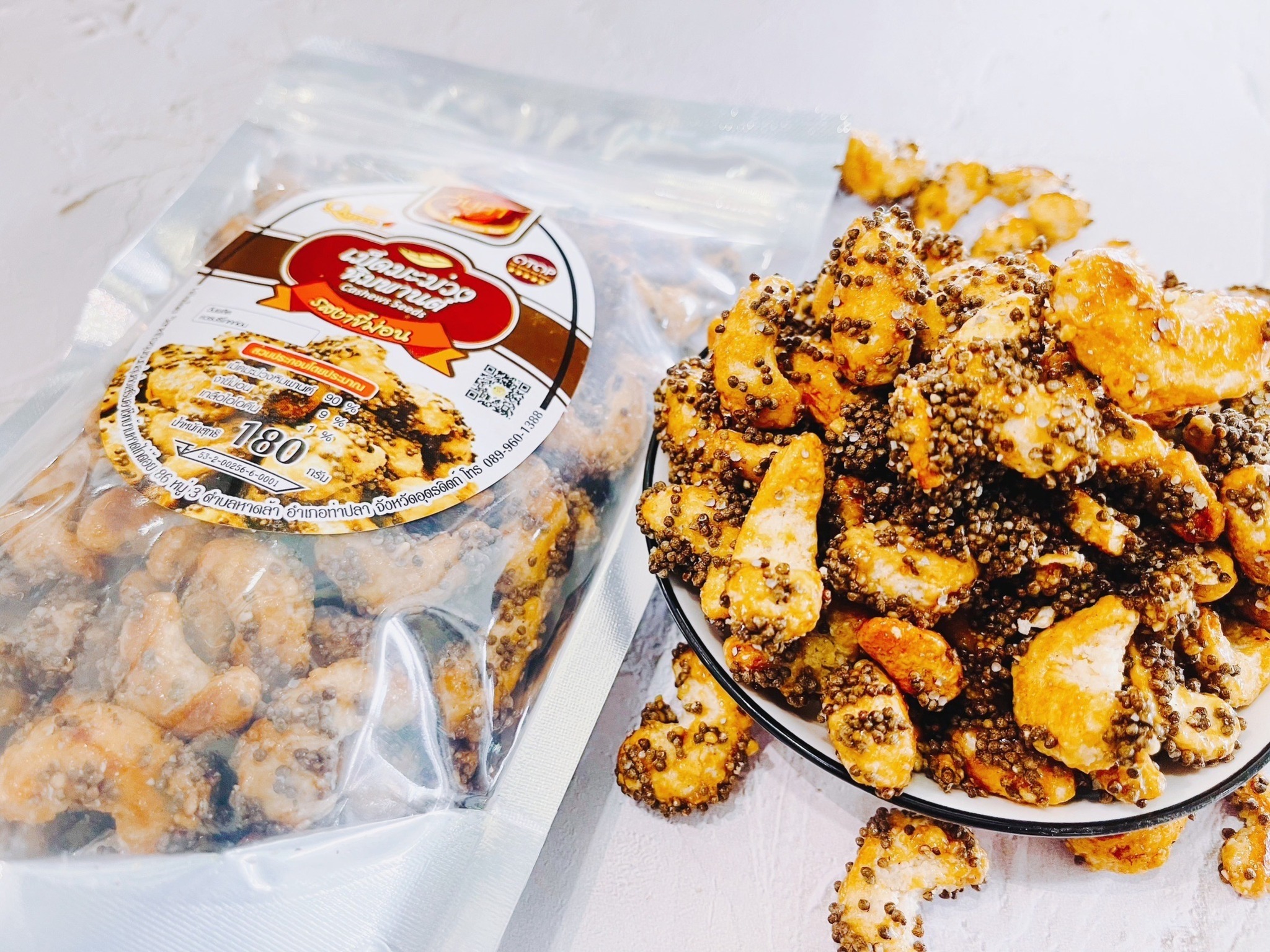 เม็ดมะม่วงหิมพานต์แปรรูปรสงาขี้ม่อน