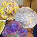 หมวกปีกกว้างสำหรับผู้หญิง สีสันสดใสสามารถสวมใส่ได้สองด้าน มีลวดลายสีสันที่ไม่เหมือนกัน
