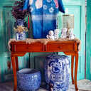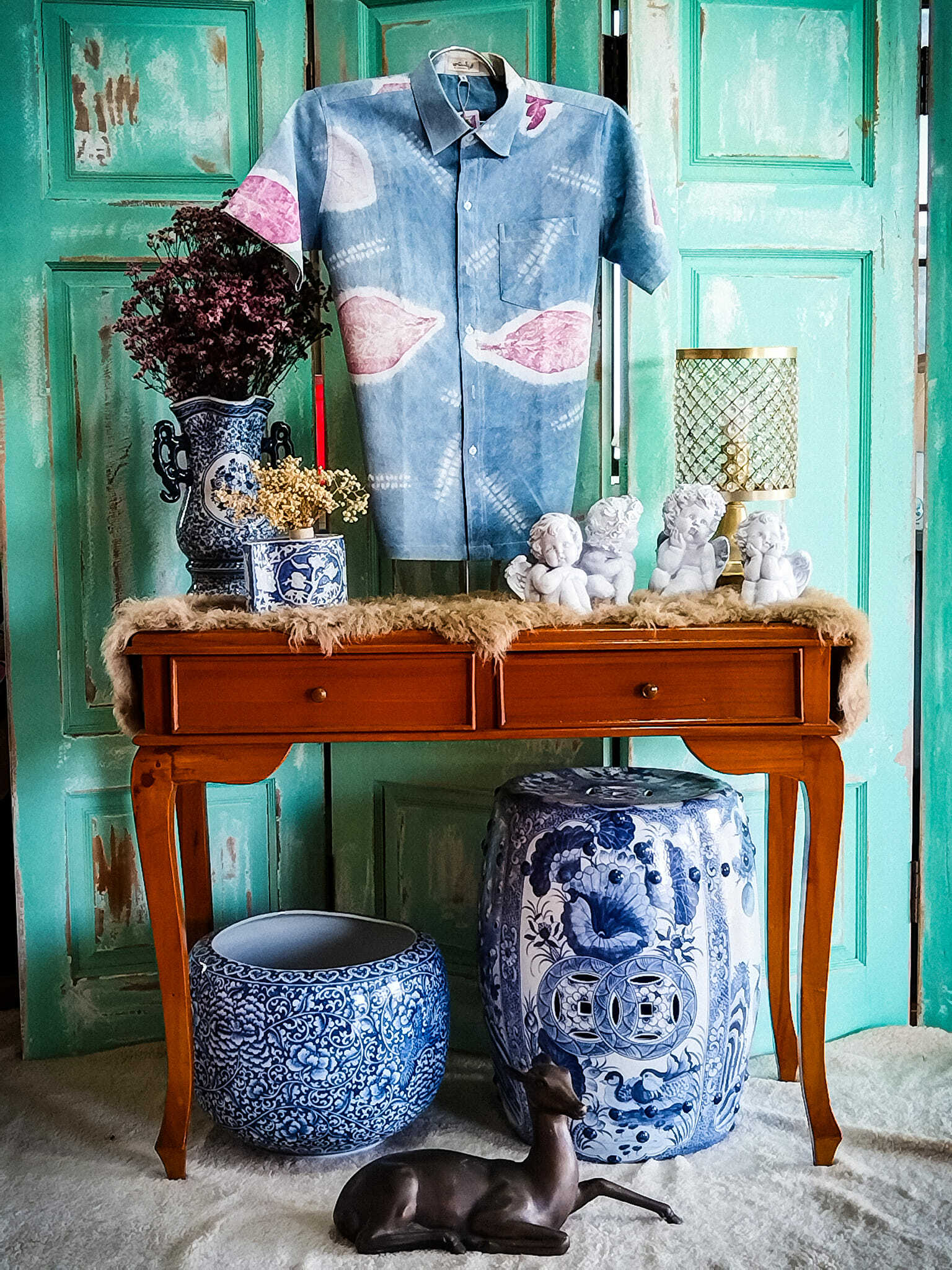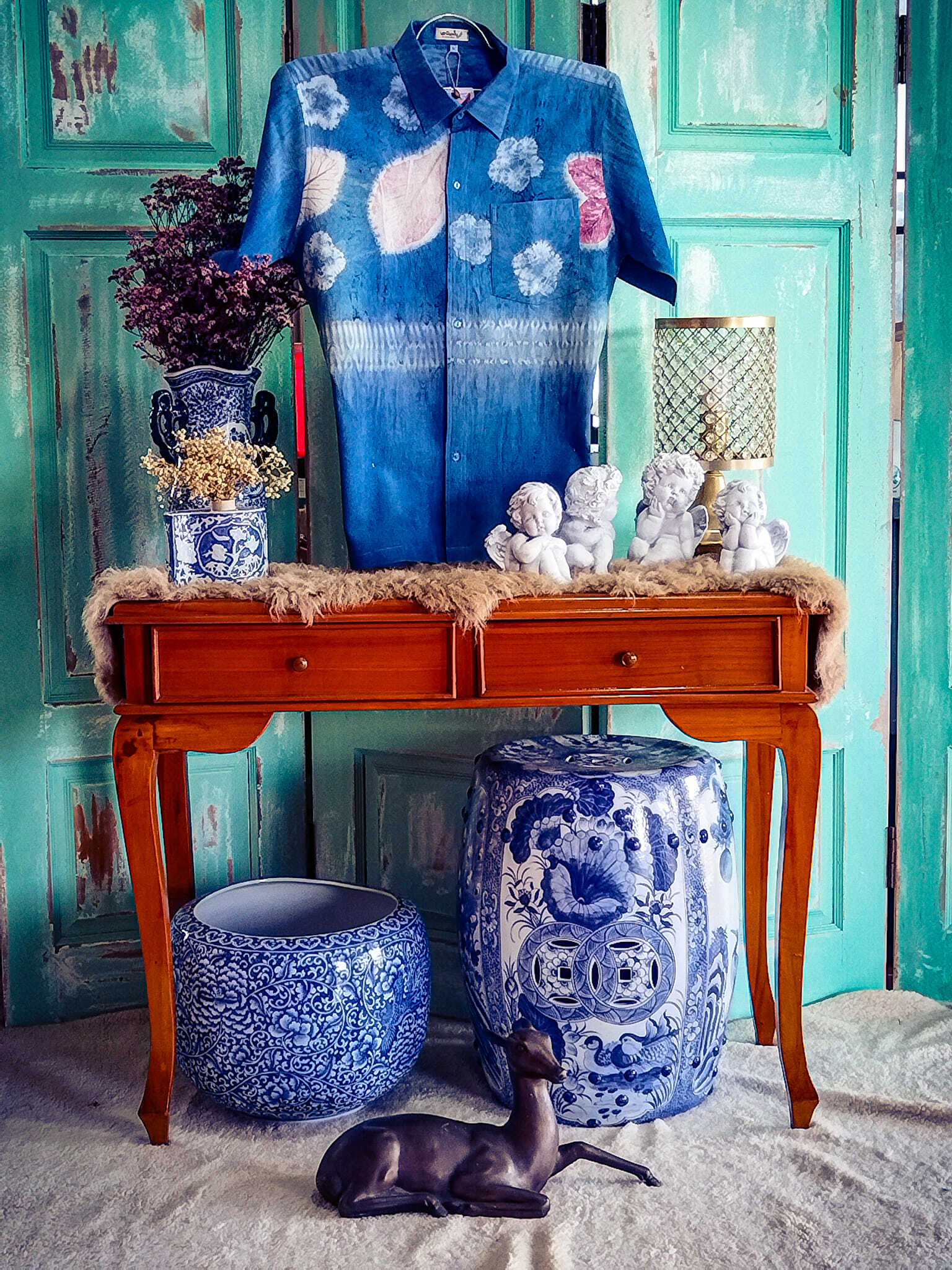 การพิมพ์ลายในไม้บนผืนผ้า ที่ฟื้นฟูการย้อมครามโดบใช้ครามธรรมชาติที่มีอยู่ในพื้นถิ่น รวมทั้งการใช้สีธรรมชาติมาทำเป็นผ้า Eco print ผสมมัดย้อมคราม เป็นการสร้งสรรค์ผลิตภัณฑ์บนผืนผ้า
