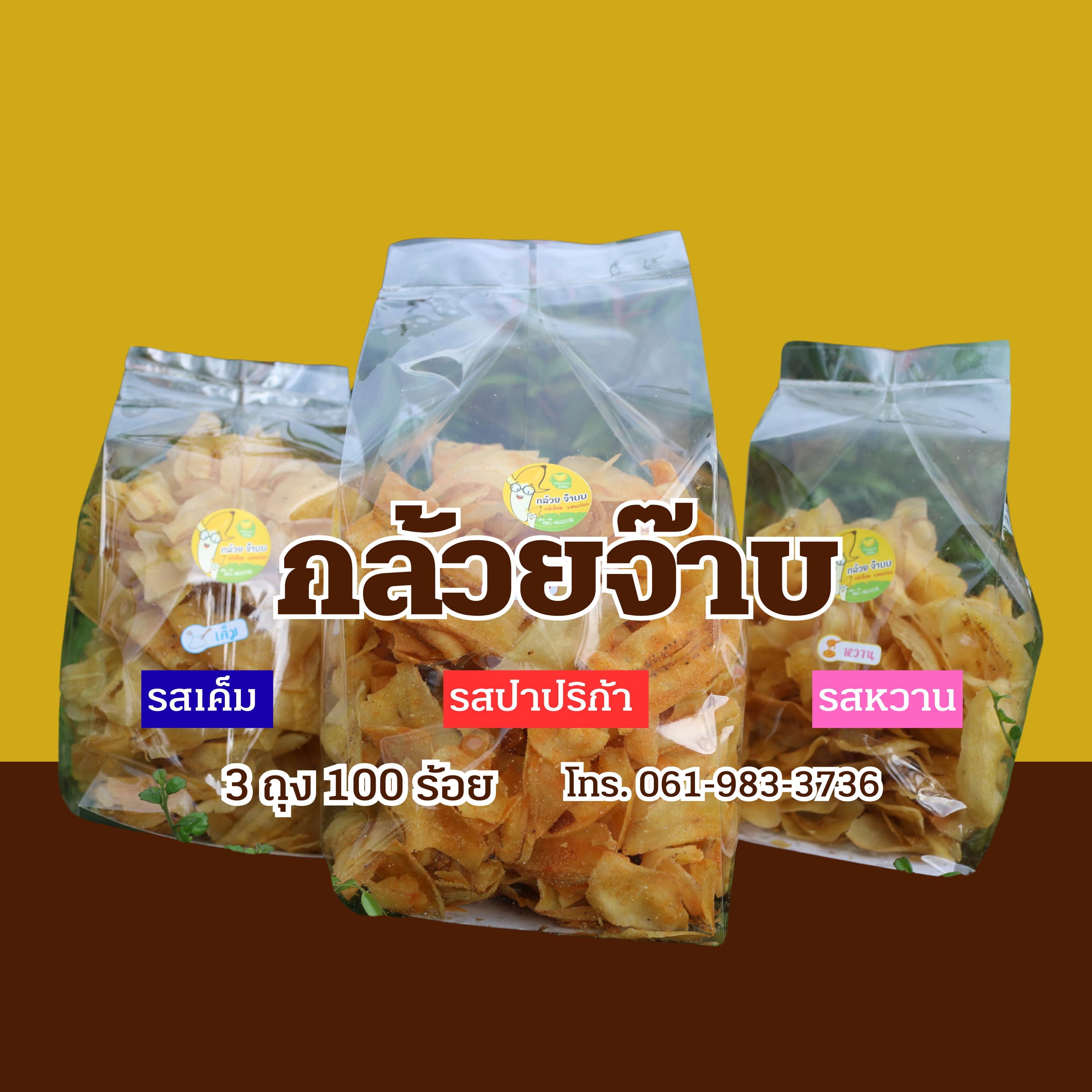 กล้วยฉาบ 3 รส เอกลักษณ์เฉพาะ คือ บางกรอบ เคี้ยวเพลิน ผลิตจากกล้วยหินธรรมชาติในพื้นที่
