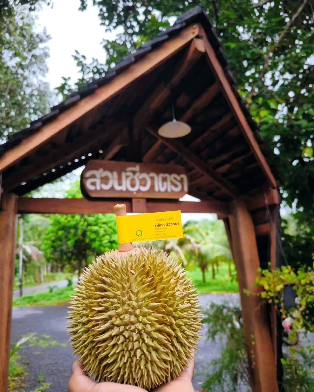 ทุเรียนสาลิกาชีวาตรา น้ำหนักลูกลูกละ 0.7-1.5 กก. เกษตรปลอดสาร ไม่ใช้ยาเร่ง สุกหอมหวานตามธรรมชาติ ได้รับรองมาตรฐาน GAP