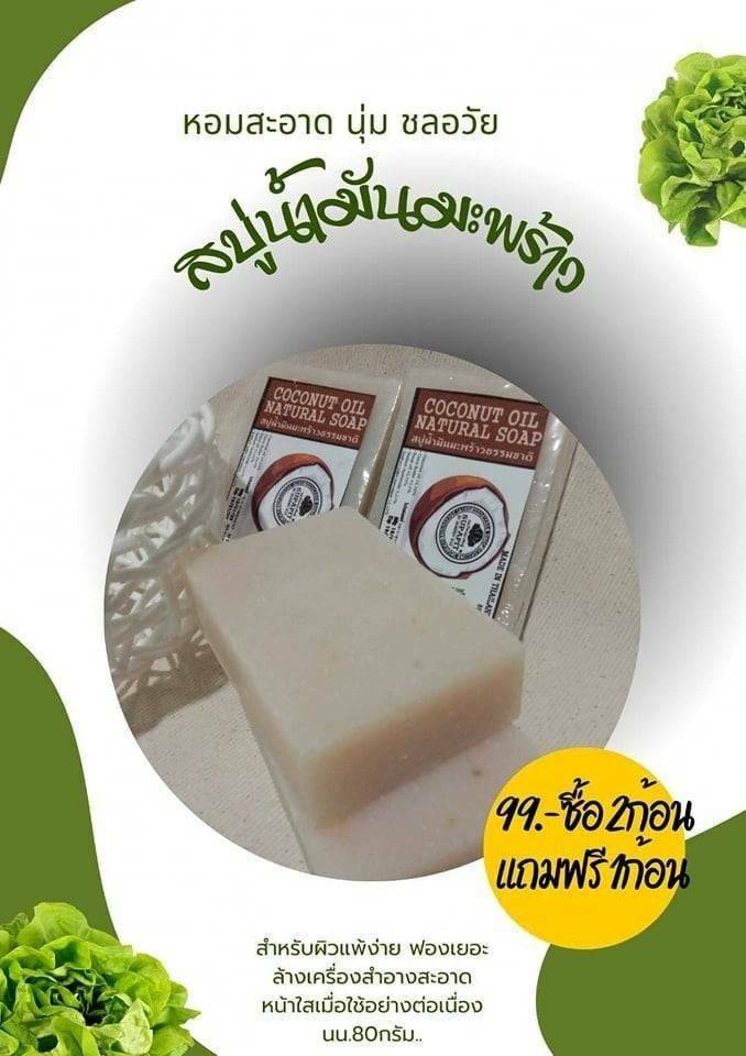 สบู่น้ำมันมะพร้าว หอมสะอาด นุ่ม ชลอวัย สำหรับผิวแพ้ง่ายฟองเยอะ ล้างเครื่องสำอางสะอาด หน้าใสเมื่อใช้อย่างต่อเนื่อง น้ำหนัก 80 กรัม