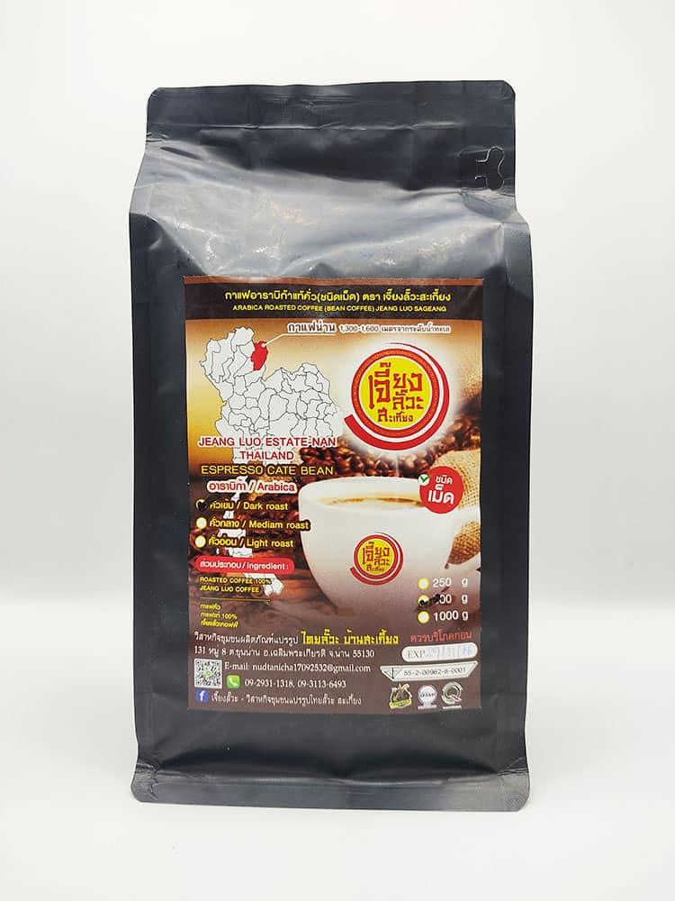 กาแฟอาราบิก้าแท้คั่วเข้ม (ชนิดเมล็ด) ตรา เจี๊ยงลั๊วะสะเกี้ยง มีหลายขนาด ได้แก่