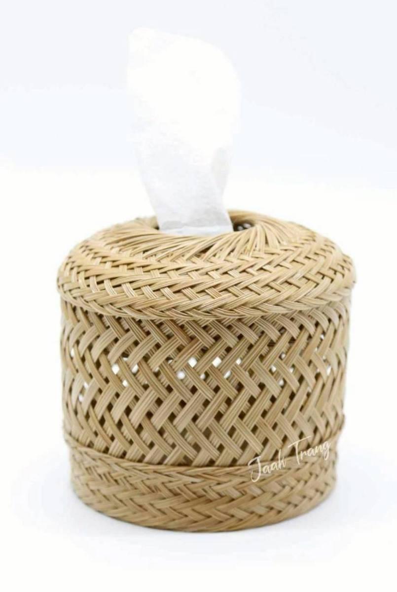 กล่องทิชชู่ ผลิตจากก้านจาก ขนาดกว้าง 13 ซ.ม. สูง 14 ซ.ม.
