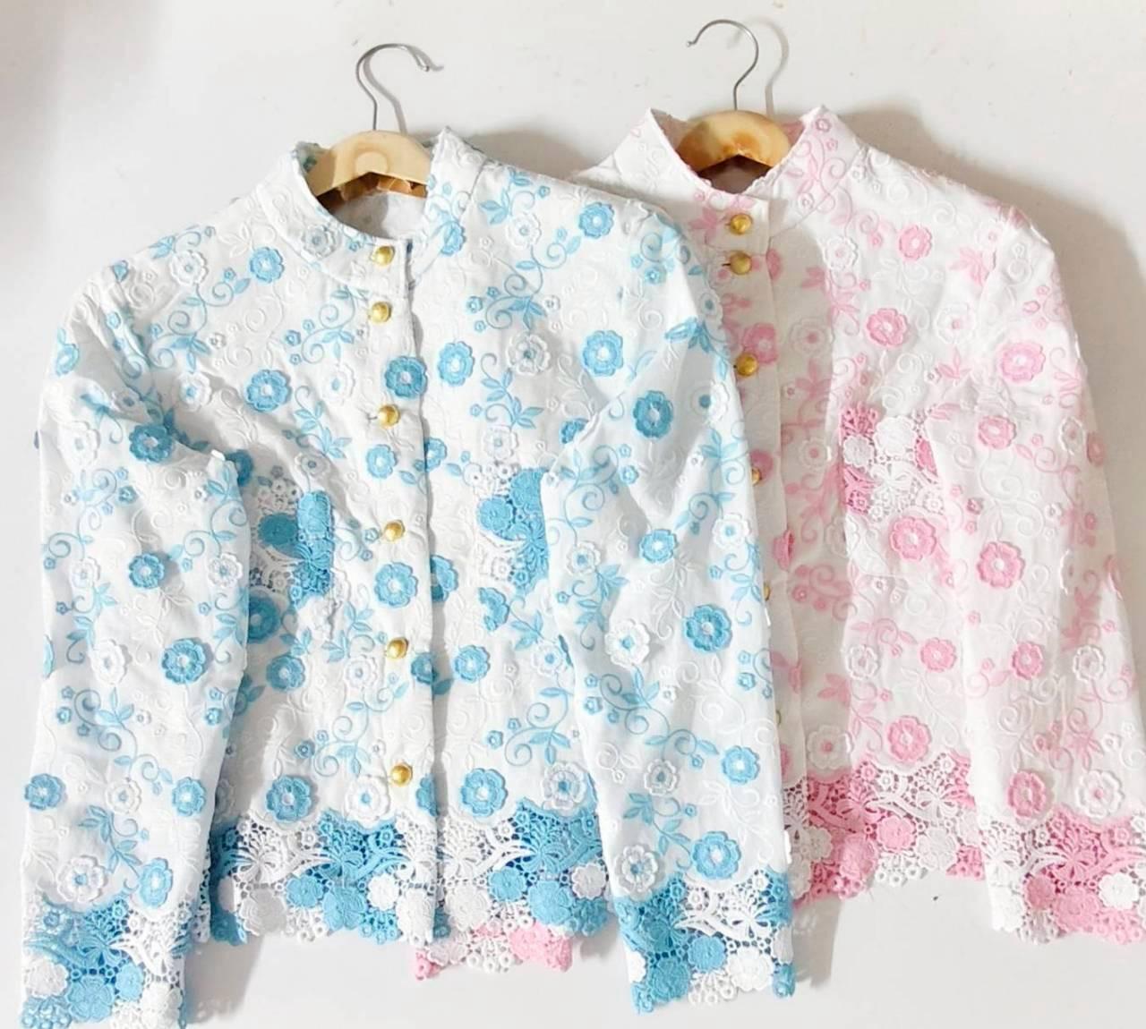 เสื้อสุภาพสตรีแขนยาว (บาบ๋า) ตัดเย็บจากผ้าลูกไม้ดอกลอย (ลายผ้าหลากหลาย)