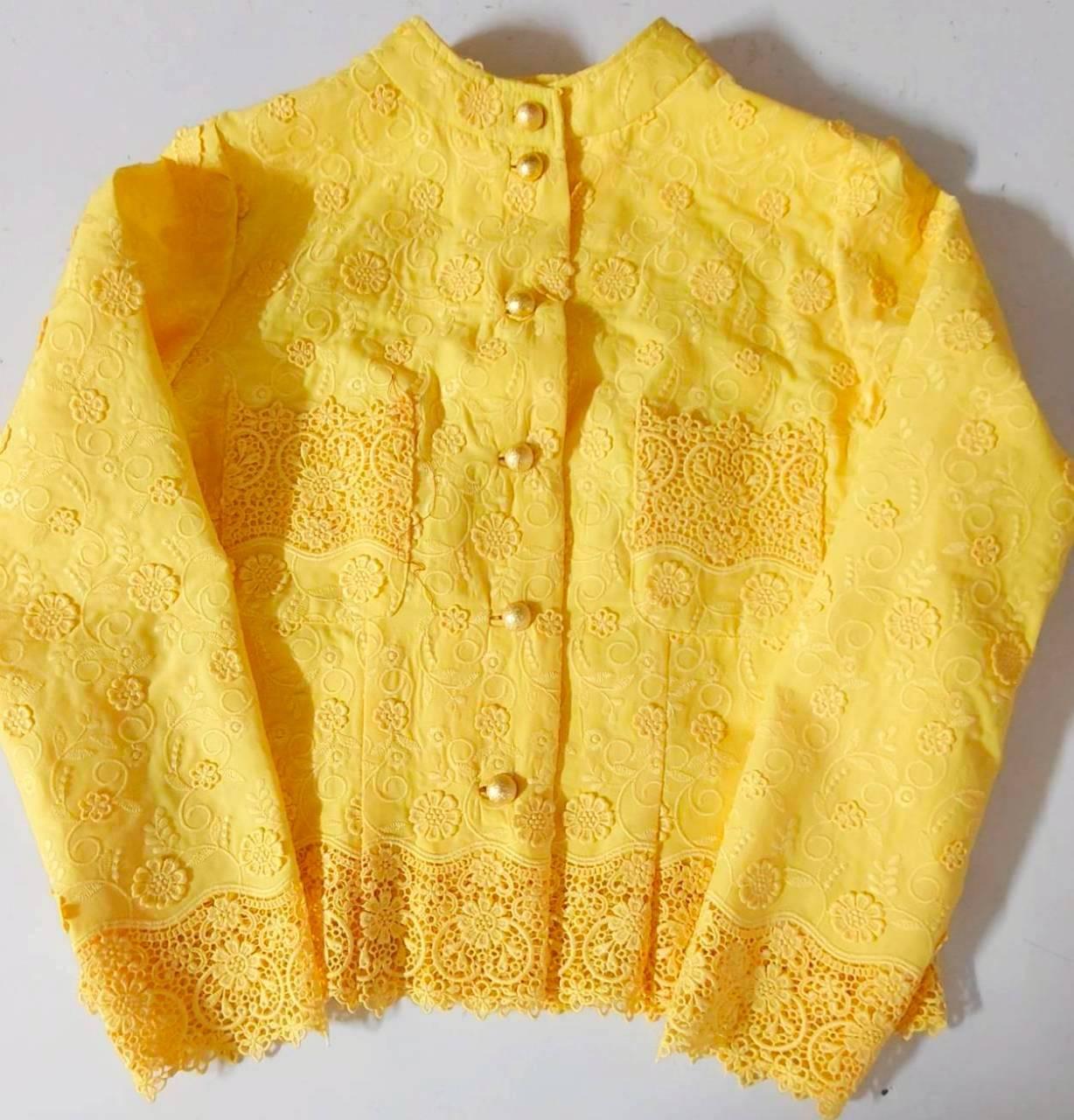 เสื้อสุภาพสตรีแขนยาว (ย่าหยา) ตัดเย็บจากผ้าลูกไม้ดอกลอย (ลายผ้าหลากหลาย)