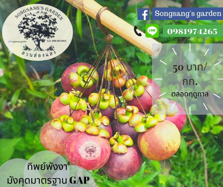 --สินค้าของสวนส่องแสงมีหลากหลายทั้งผลผลิตสดและแปรรูป สินค้าที่ได้รับความนิยมเป็นอย่างมาก คือ มังคุดทิพย์พังงา นั่นเอง นอกจากนี้ยังมี ผักสด สะตอพร้อมทาน มังคุดกวน และสินค้าอื่นๆอีกมากมาย หากสนใจเข้าเลือกซื้อเลือกชม แลกเปลี่ยนประสบการณ์กับเจ้าของสวนผ่านทางเพจเฟซบุ๊ก : Songsang's garden กันได้เลย