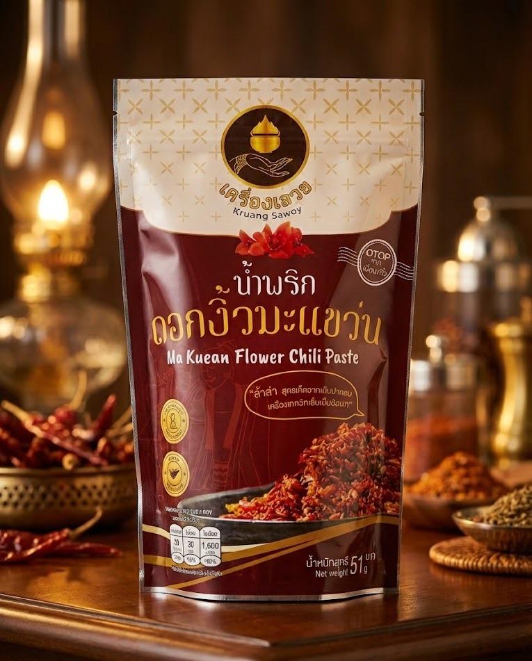 สัมผัสความแปลกใหม่ของ น้ำพริกดอกงิ้วมะแขว่น ผลงานสร้างสรรค์จาก กลุ่มวิสาหกิจชุมชนทำขนมและแปรรูปผลผลิตทางการเกษตร ต.เมืองจัง อ.ภูเพียง เราดึงความกรุบของดอกงิ้วมาผสานกับความหอมซ่าที่เป็นเอกลักษณ์ของ "มะแขว่นเมืองน่าน" คั่วจนหอมฟุ้ง รสชาติเข้มข้น จัดจ้านถึงใจ กินกับข้าวสวยร้อนๆ หรือจิ้มข้าวเหนียวก็ลำแต้ๆ!