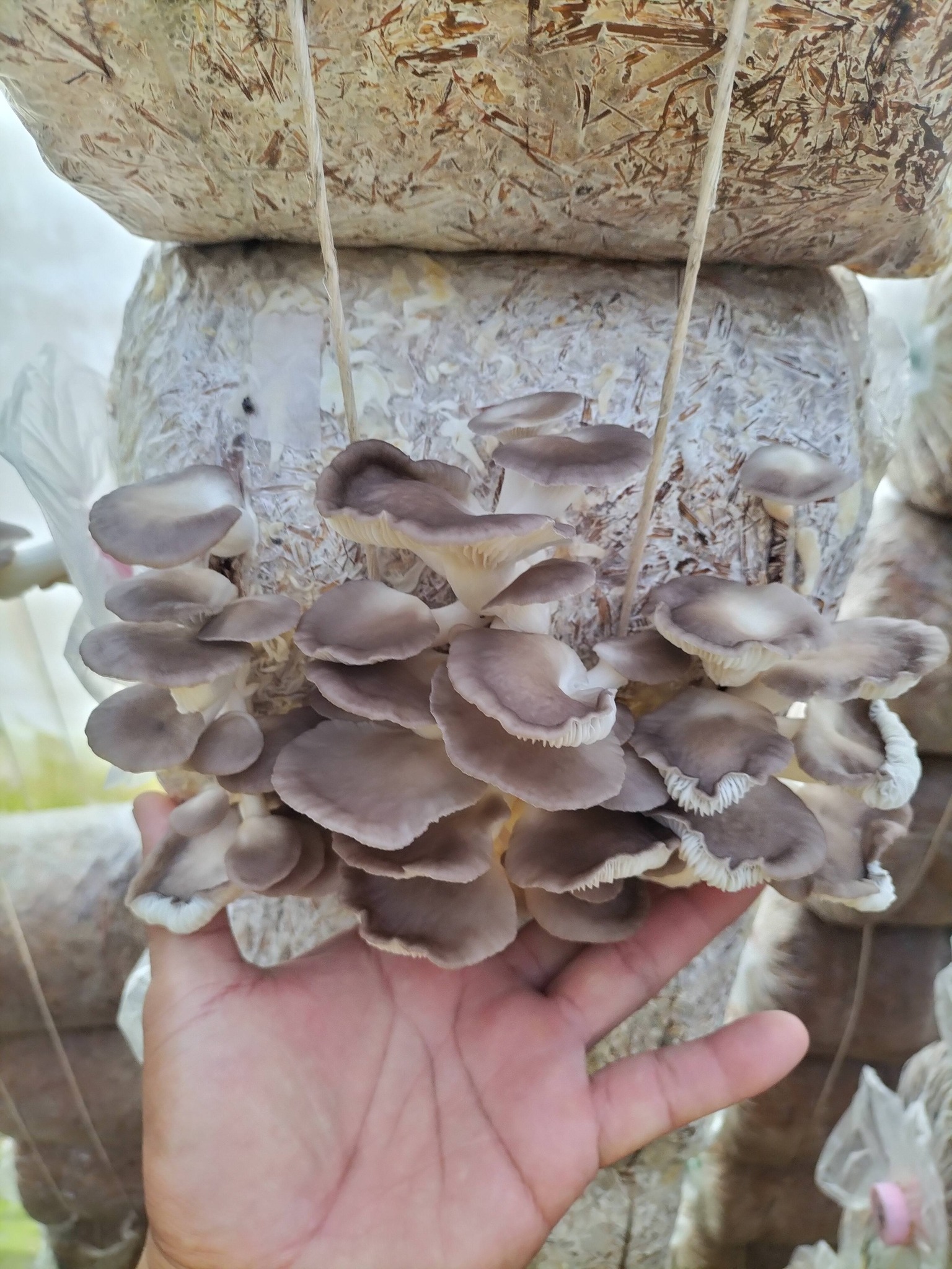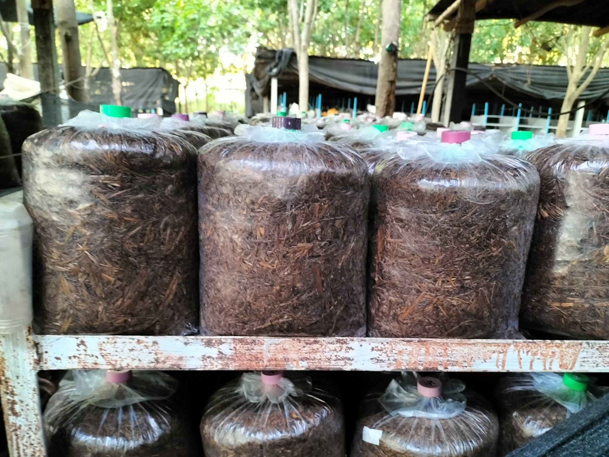 จำหน่ายก้อนเห็ดจากฟางข้าวหอมมะลิสุรินทร์ เห็ดนางฟ้าภูฐาน