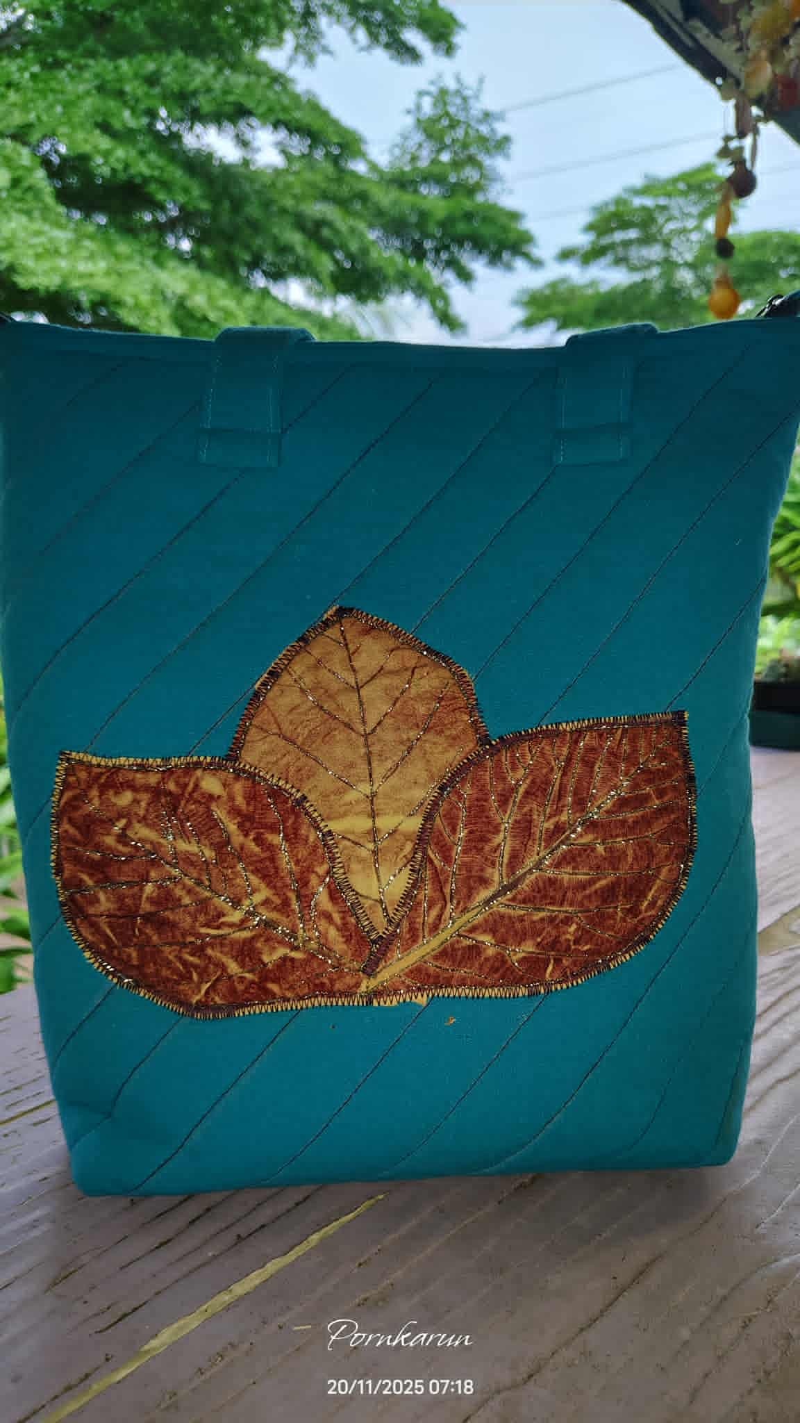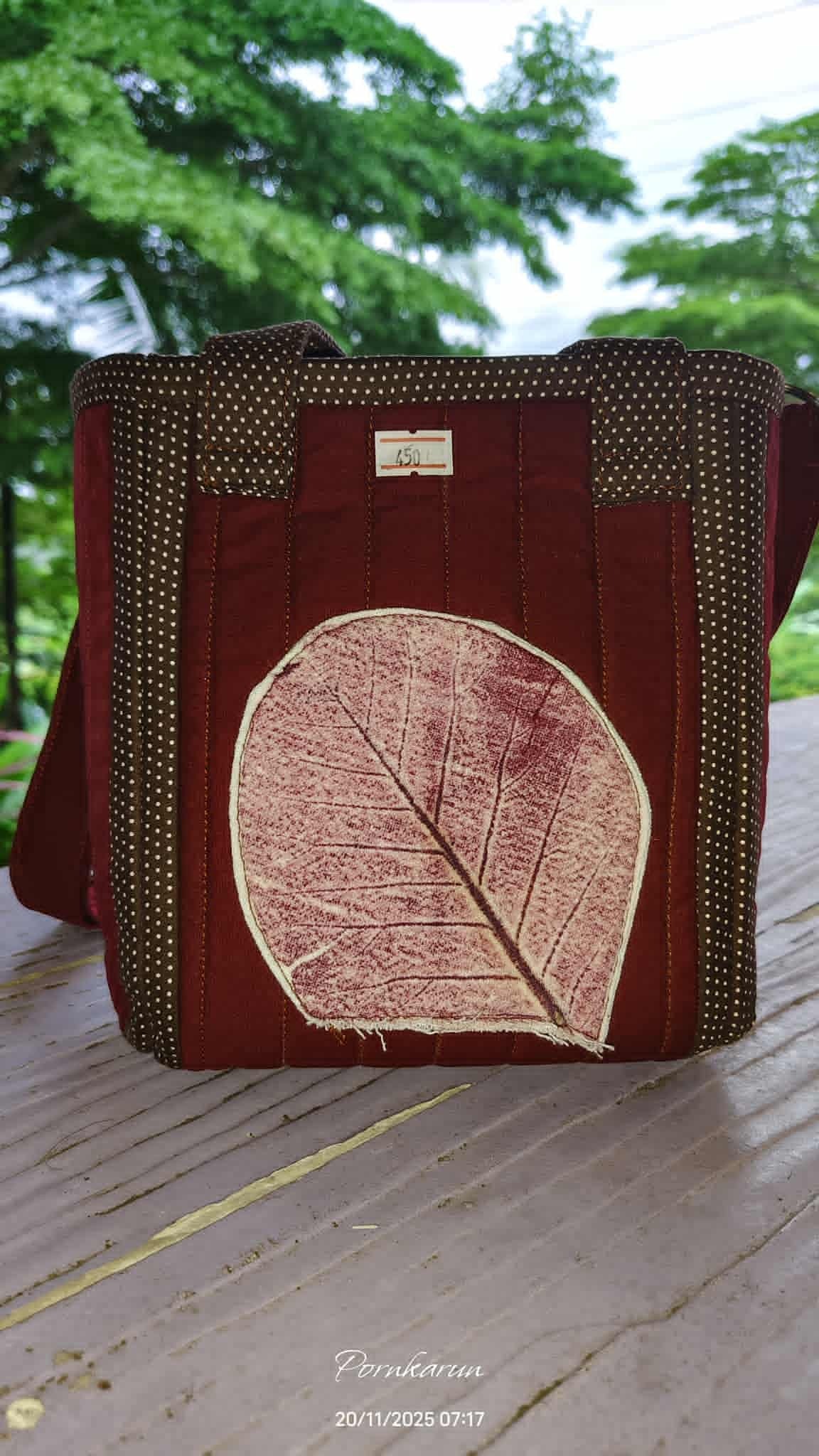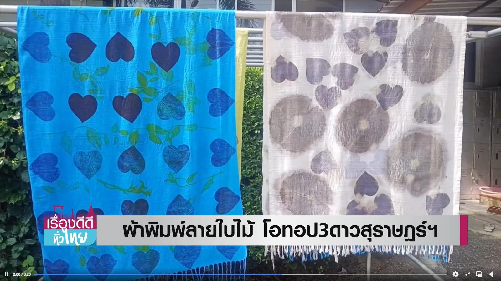 ผ้าพิมพ์ใบไม้จากธรรมชาติ ไม่ใช้สีสังเคราะห์ ผลิตจากเกษตรกรในชุมชน ถ่ายทอดออกมาเป็นงานศิลปะผืนผ้า สามารถสั่งทำได้