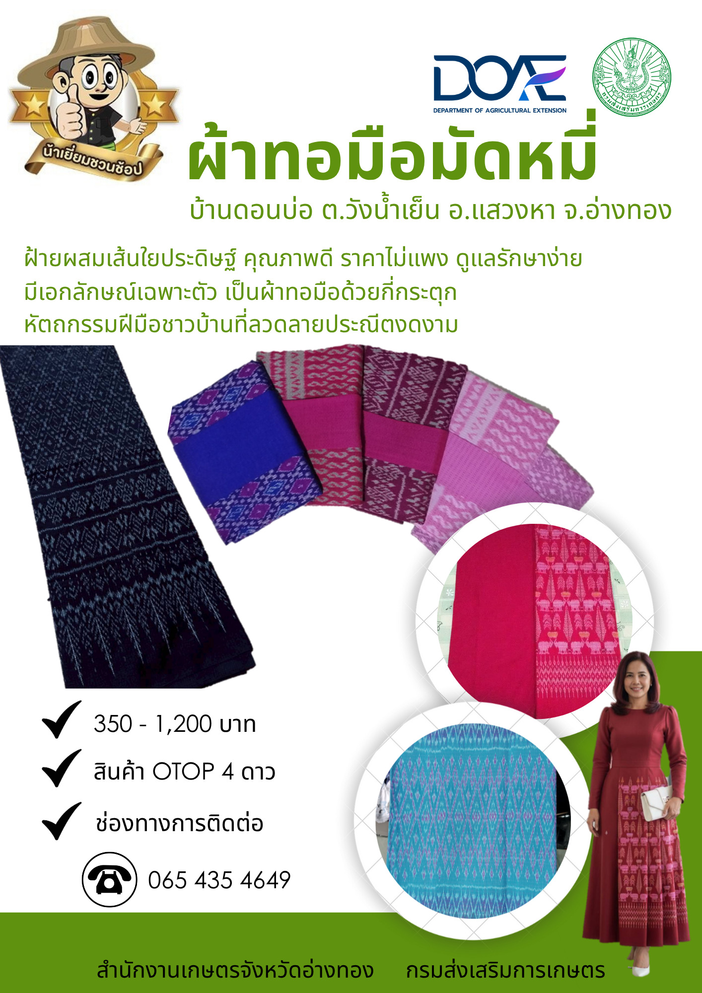 ขอเชิญทุกท่านร่วมสนับสนุนผ้าทอที่มีเอกลักษณ์ของจังหวัดอ่างทอง