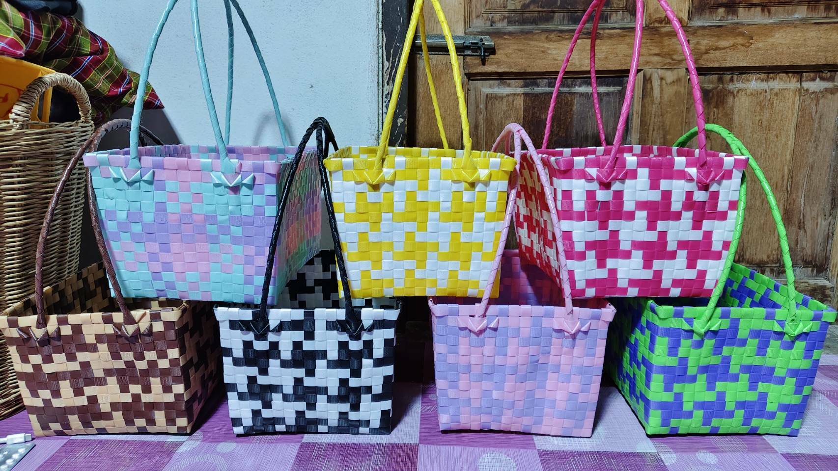 ตะกร้าสานเส้นพลาสติก​