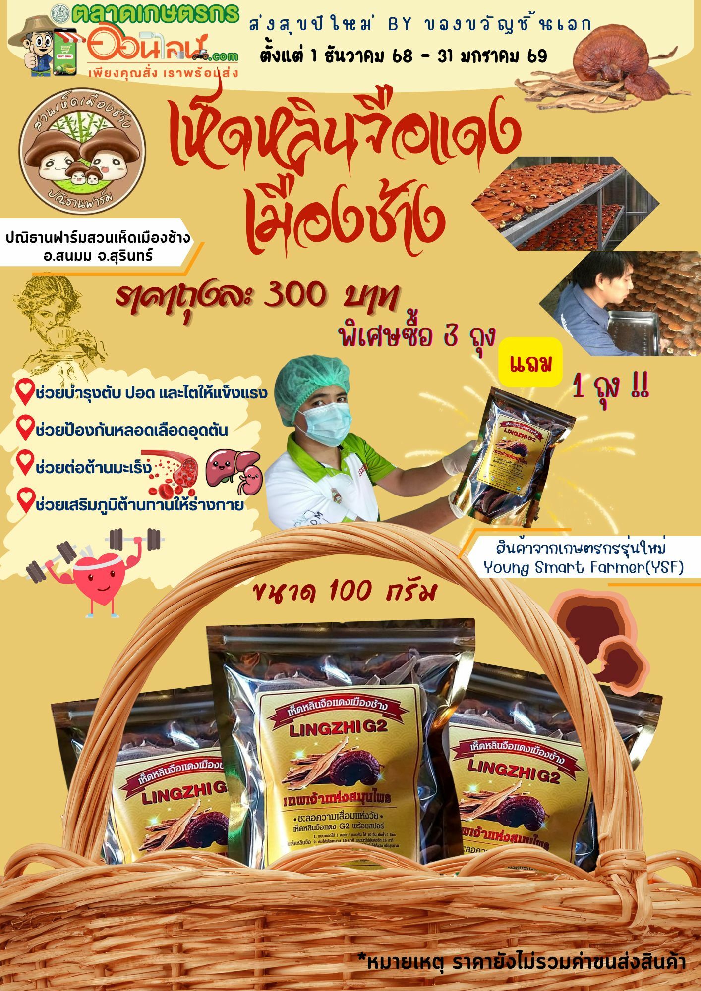 โปรโมชั่นส่งสุขปีใหม่ ขนาด 100 กรัม ราคา 300 บาท