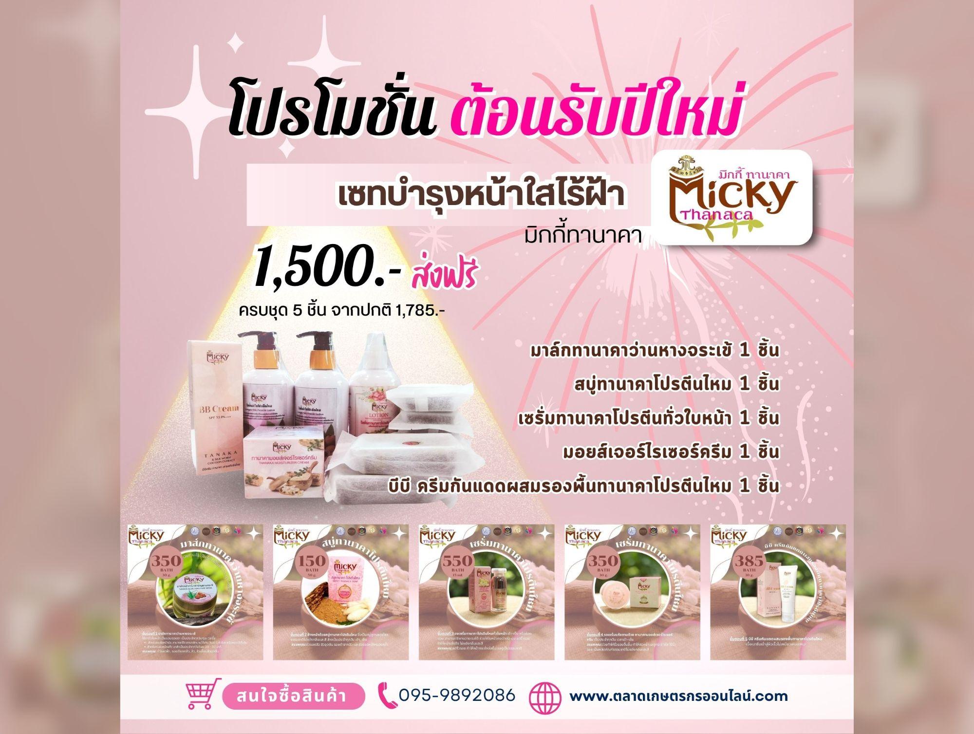 เซทบำรุงหน้าใสไร้ฝ้า มิกกี้ทานาคา มีสินค้าจำนวน 5 ชิ้น ประกอบด้วย