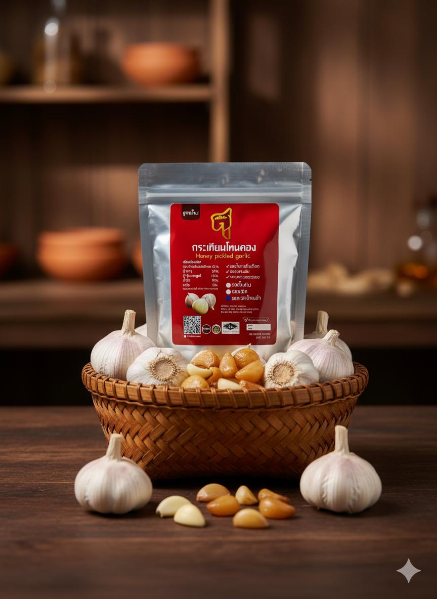 กระเทียมโทนดอง รสพริกไทยดำ (สูตรแห้ง)