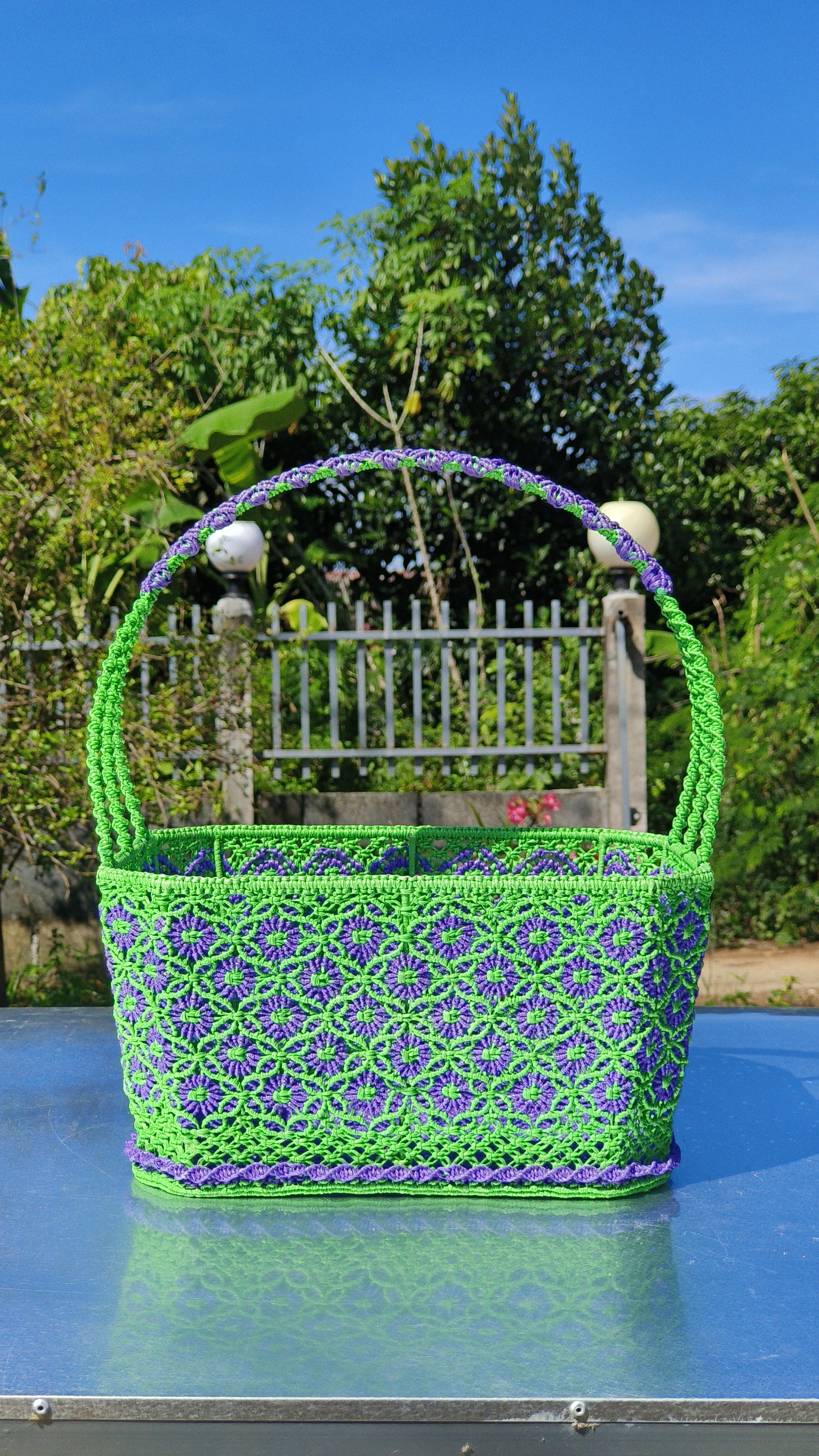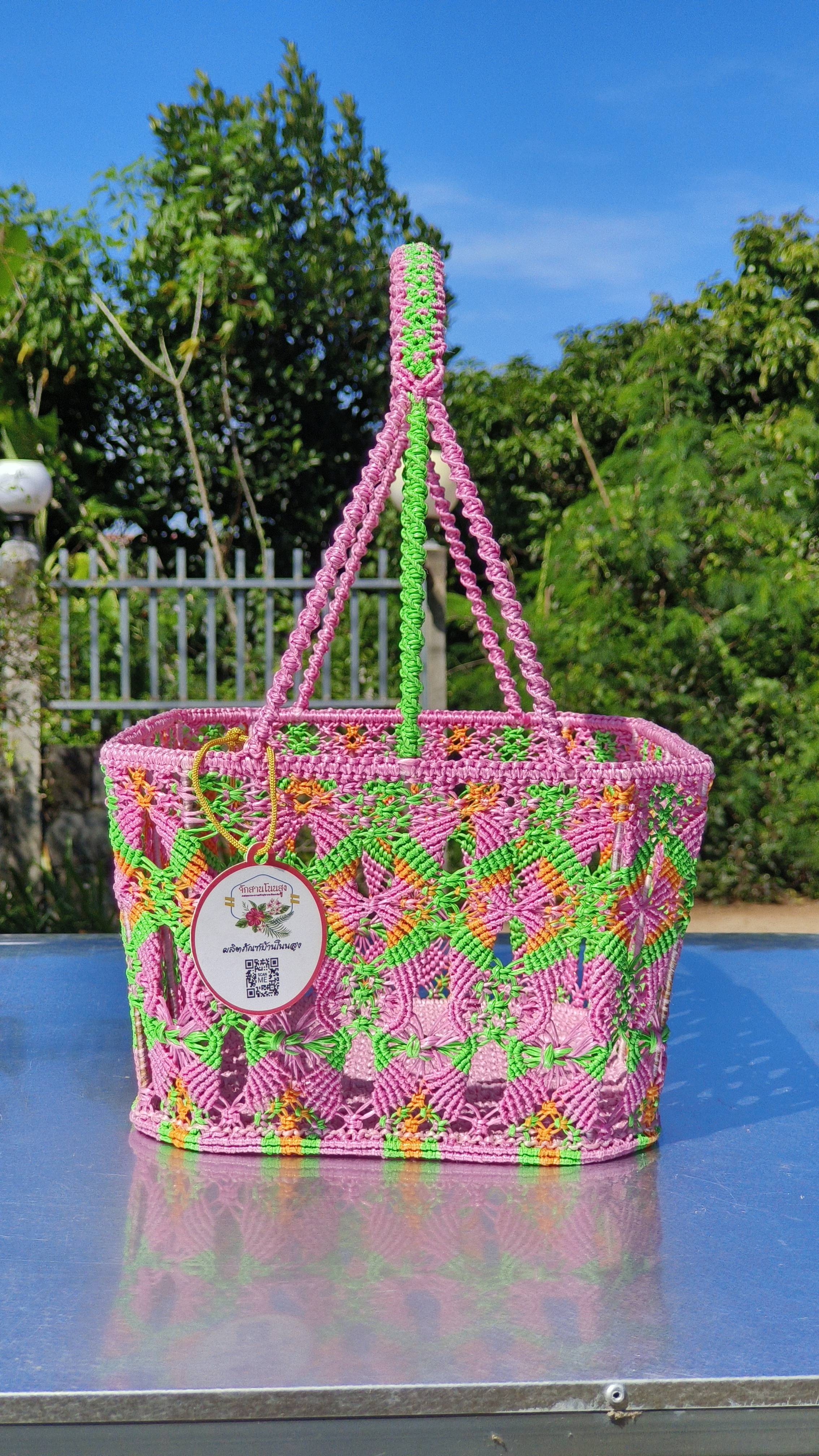 ตระกร้าจักสานใยสังเคราะห์ ลายถักแบบประณีต