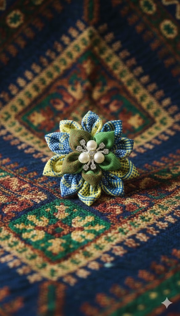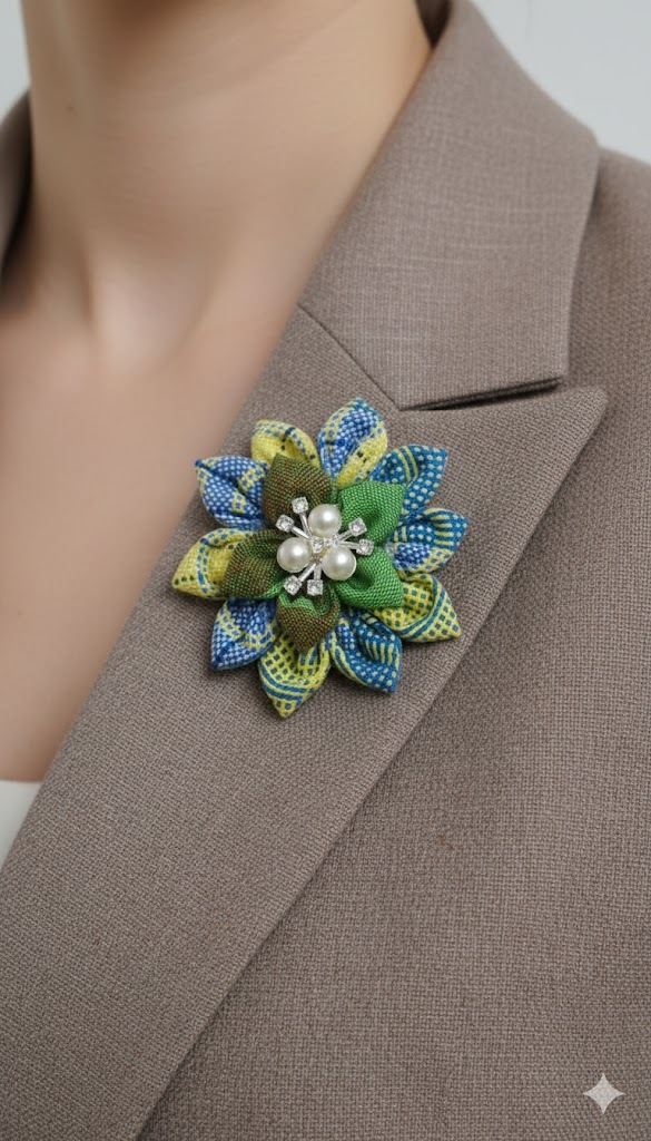 เข็มกลัดดอกไม้ผ้าฝ้ายทอมือ