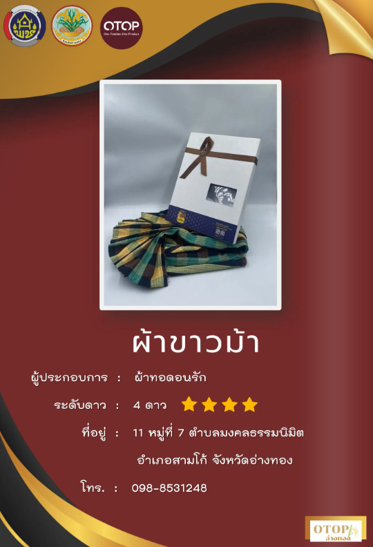 ผ้าขาวม้าฝ้ายทอมือ เป็นสินค้าที่มีคุณภาพสูงและมีความทนทานมาก ซึ่งสามารถใช้ได้หลากหลายวัตถุประสงค์ เช่น ผ้าพันคอ ผ้าคลุมไหล่ และของขวัญ นอกจากนี้ยังเป็นผลิตภัณฑ์ชุมชน OTOP ที่มีความสวยงามและมีคุณภาพ ขนาด กว้าง กว้าง 1 เมตร ยาว 2 เมตร