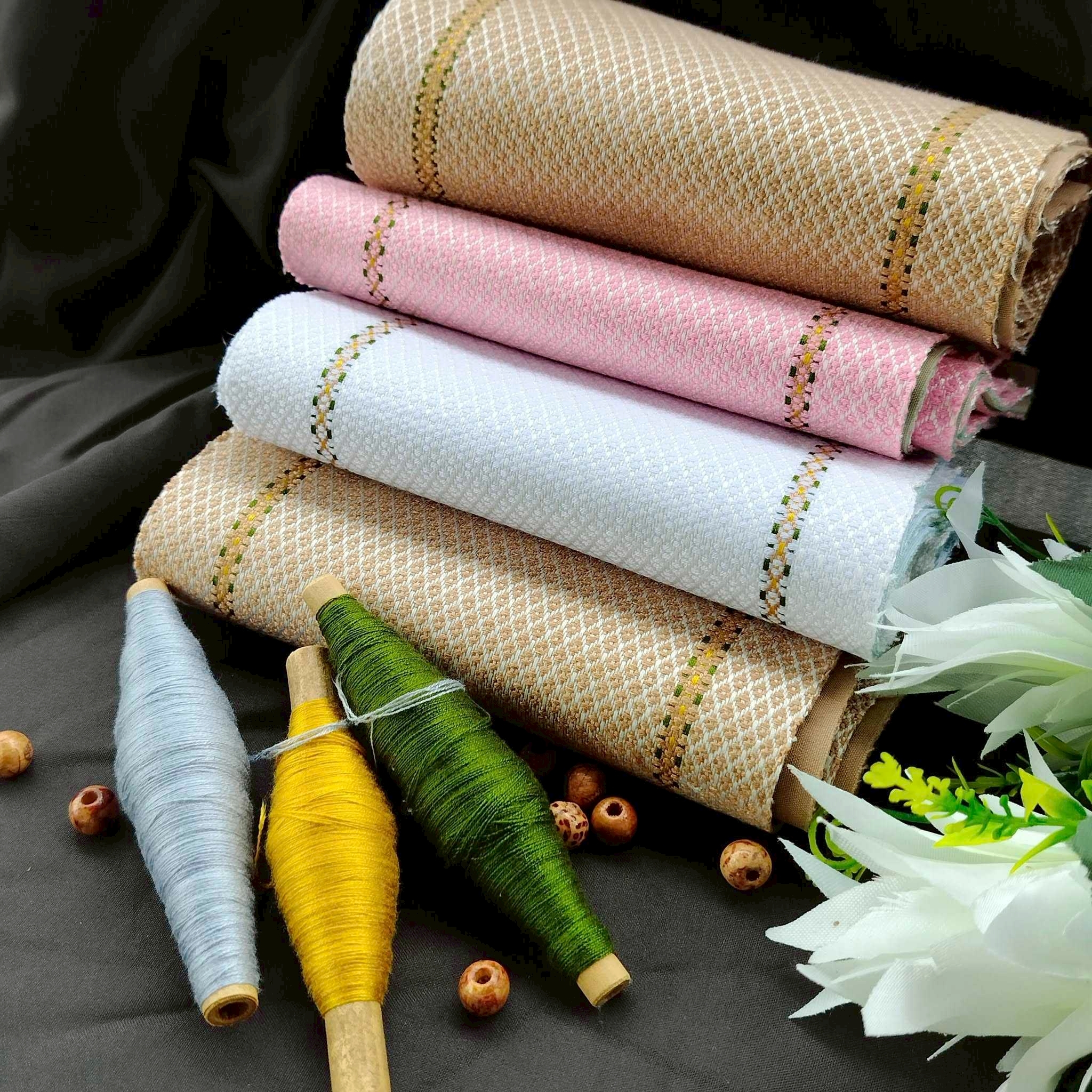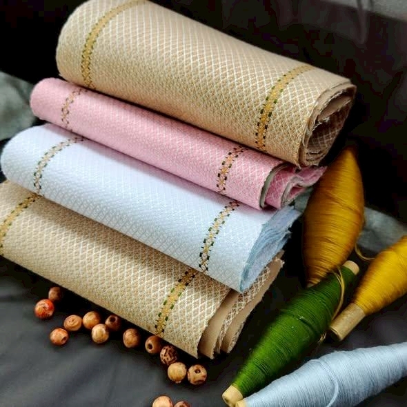 ผ้าทอผลิตภัณฑ์ ผ้าย้อมดินถิ่นก่อนประวัติศาสตร์บ้านวังหาด ผืนผ้าจากภูมิปัญญาท้องถิ่น ย้อมด้วยดินโบราณแท้จากแหล่งประวัติศาสตร์ สวยงาม มีเอกลักษณ์ และทรงคุณค่า