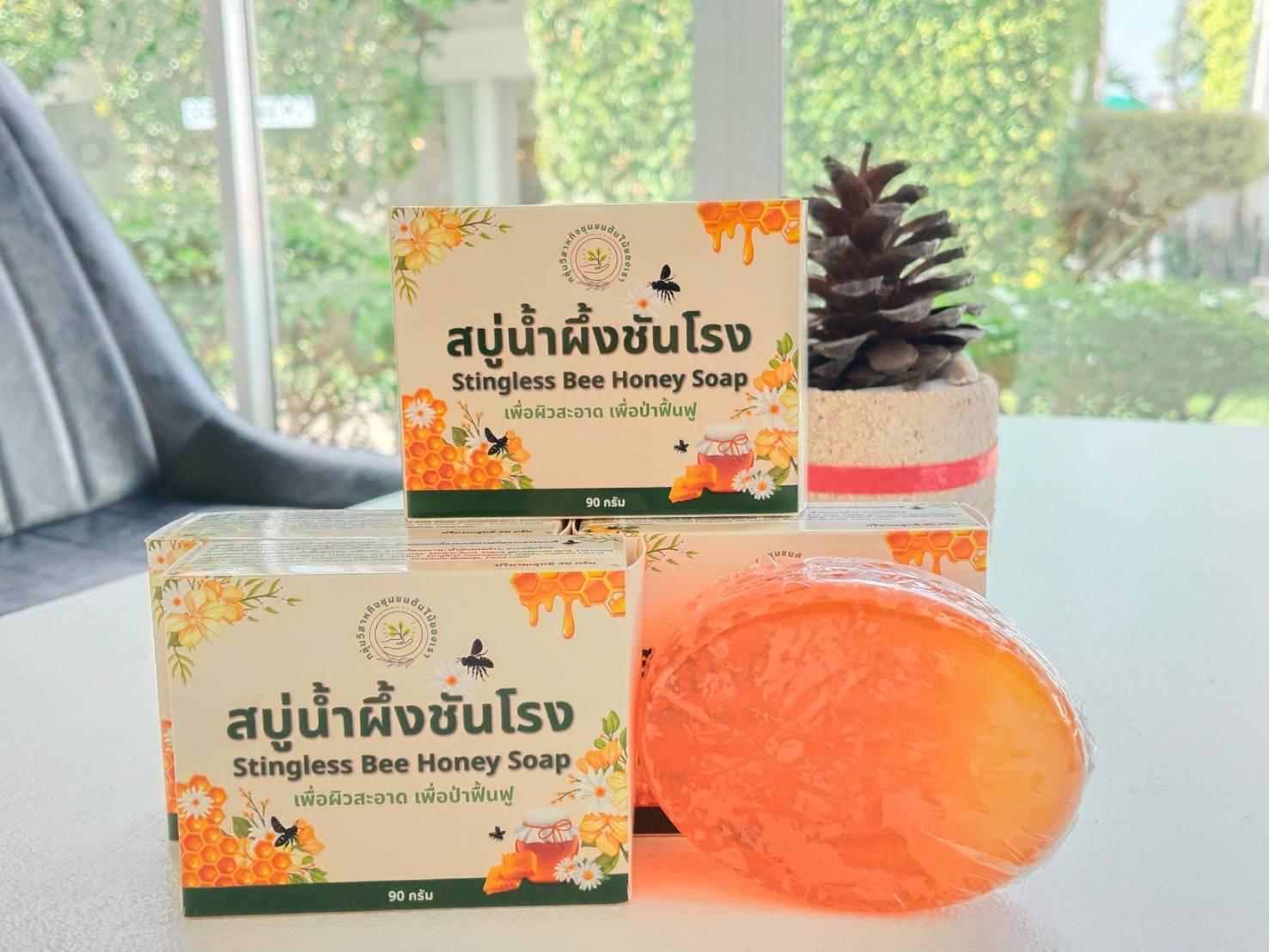 สบู่น้ำผึ้งชันโรง ผลิตภัณฑ์จากวิสาหกิจชุมชนต้นไม้ของเรา รักษ์สันติสุข พลิกแปลงเกษตรเชิงเดี่ยว สู่สินค้าฟื้นฟูป่าและชีวิตชุมชน น้ำผึ้งชันโรงมีคุณสมบัติช่วยให้ความชุ่มชื้นแก่ผิว ลดความแห้งกร้าน และอ่อนโยนต่อผิวบอบบาง นอกจากนี้ยังมีฤทธิ์ต้านแบคทีเรีย ช่วยลดการสะสมของเชื้อโรค อันเป็นสาเหตุของสิวและผดผื่น อีกทั้งยังอุดมด้วยสารต้านอนุมูลอิสระ ช่วยฟื้นฟูผิวให้ดูสุขภาพดี ลดการระคายเคือง และทำให้ผิวนุ่ม เรียบเนียน เมื่อใช้อย่างต่อเนื่องผิวจะดูสดใสอย่างเป็นธรรมชาติ