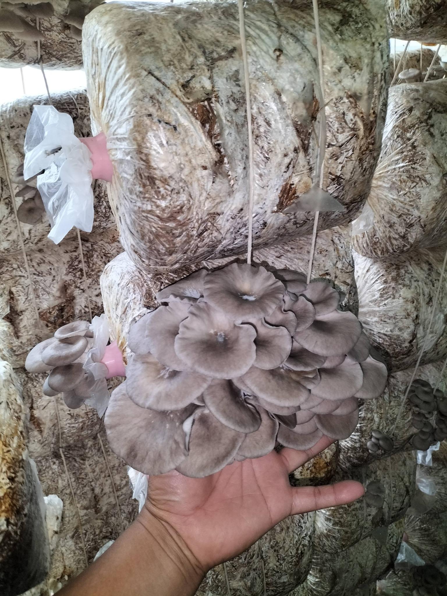 จำหน่ายก้อนเห็ดจากฟางข้าวหอมมะลิสุรินทร์ เห็ดนางฟ้าภูฐาน
