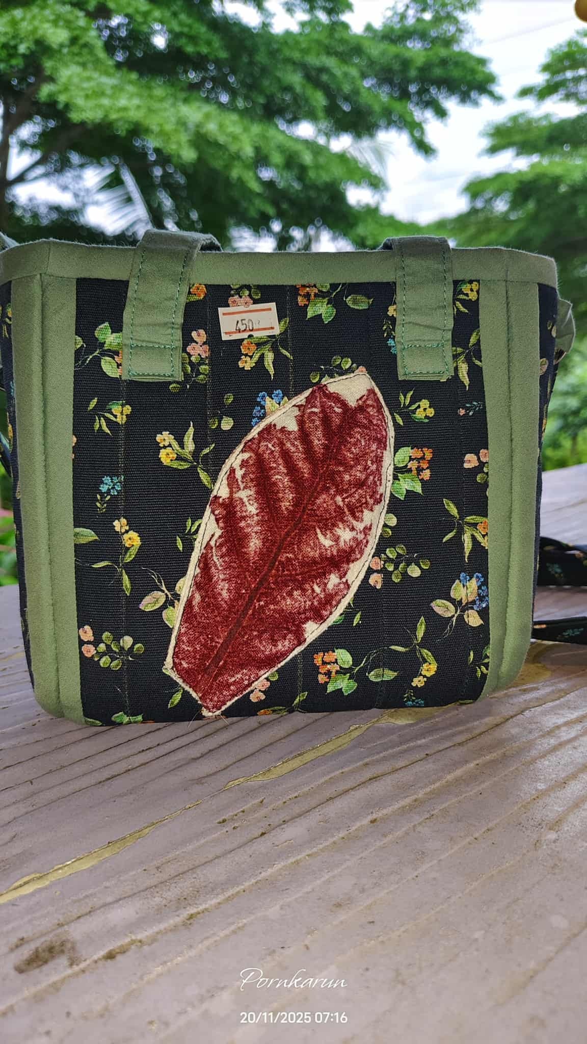 ผ้าพิมพ์ใบไม้จากธรรมชาติ ไม่ใช้สีสังเคราะห์ ผลิตจากเกษตรกรในชุมชน ถ่ายทอดออกมาเป็นงานศิลปะผืนผ้า สามารถสั่งทำได้